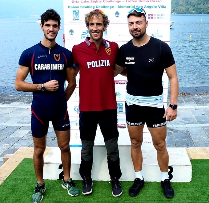 Per quanto riguarda l’aspetto propriamente agonistico, pronostico rispettato in campo maschile con la vittoria del portacolori delle Fiamme Oro, il Campione del Mondo in Singolo Pesi Leggeri Martino Goretti; l’atleta comasco, che aveva partecipato alla terza edizione del Memorial, ha effettuato una partenza sprint – anche per salvaguardare la propria imbarcazione, come ha candidamente ammesso nel dopo gara – ed è sempre stato al comando, andando a chiudere in 23’55”6; seconda posizione per Stefano Oppo (CS Carabinieri), che ha percorso i 6 km del classico percorso in 24’10”3. Il terzo gradino del podio è stato conquistato dall’israeliano Dani Fridman (Gavirate) con il tempo di 24’18”2.